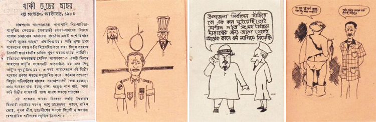 অন্যদিকে খবর পেলাম সেলিম সাহেবের খাজা আর্ট প্রেস পুলিশ রেইড করেছে, বহু কাঠখড় পুড়িয়ে সেলিম সাহেব পুলিশ ম্যানেজ করেছেন। স্বৈরাচারবিরোধী আন্দোলনে সেলিম সাহেবের মতো এ রকম কতো মানুষের নিভৃত অবদান আছে, যা ইতিহাসে কোনো দিন লেখা থকবে না। পুলিশ রেইডের পর আমি কিছুটা ভয় পেয়ে গেলাম এবং কিছুদিন কিছুটা লুকিয়ে থাকলাম। ‘খাকি ভূতের আছর’-এর সুবাদে ছাত্র সংগ্রাম পরিষদ মহলে আমার কিছুটা খ্যাতি বাড়লো; যদিও প্রকৃত খ্যাতি পাওয়ার যোগ্য ছিল জাহীদের। কিন্তু জাহীদ তার মাকে খুব ভয় পেত এবং কিছুতেই প্রকাশ করতে দিলো না যে এগুলো আসলে তার কীর্তি। মনে আছে, একদিন ছাত্র সংগ্রাম পরিষদের একটা প্রোগ্রামে মধুর ক্যান্টিনে যাচ্ছি, ক্যান্টিন চত্বরের কাছে আসতেই ছাত্রলীগের কেন্দ্রীয় প্রচার সম্পাদক নড়াইলের আব্দুল মুকিত লাভলু ভাই চিৎকার করে বলে উঠলেন, এই যে দেখো খাকি ভূত আসতেছে। তারপর অনেক দিন উনারা আমাকে মজা করে ‘খাকি ভূত’ নামে ডাকতেন। ভোজনরসিক লাভলু ভাই কার্টুন পত্রিকার সাফল্যে খুশি হয়ে আমাকে ঠাটারীবাজারে মমতাজ মিয়ার বিখ্যাত স্টার রেস্টুরেন্টে নিয়ে গেলেন খাওয়ানোর জন্য, সঙ্গে ছিলেন হাসনাত ভাই। তিনজন রিকশায় উঠলে আমাদের অঘোষিত নিয়ম ছিল সবচেয়ে জুনিয়রজন রিকশার মাঝে সিটের কাঁধে বসবে, তাই আমার জায়গা স্বভাবতই সেখানে হলো। আমরা এক রিকশায় তিনজন মধ্য দুপুরে মধুর ক্যান্টিন থেকে সোজা ঠাটারীবাজার রওনা দিলাম।